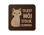 Drewniana podkładka pod kubek Kot kotek „To jest mój stolik” Prezent GRAWER