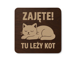 Drewniana podkładka pod kubek kotek „Zajęte! Tu leży kot” Prezent GRAWER
