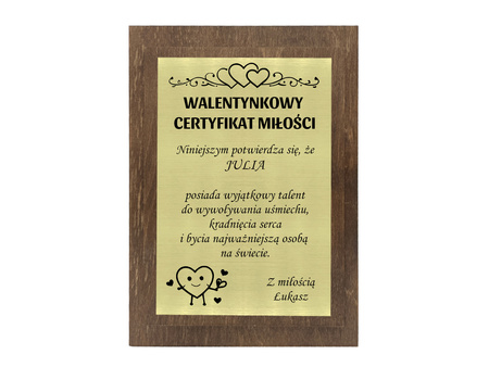 Walentynkowy certyfikat z grawerem dyplom prezent na walentynki