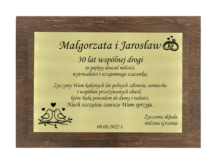 • Tabliczka jubileuszowa na rocznicę ślubu z grawerem – personalizowana pamiątka z dedykacją