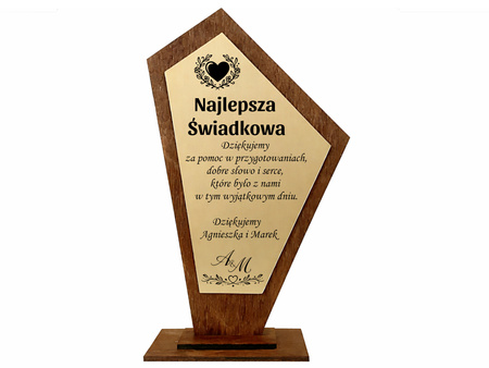 Podziękowanie dla Świadkowej – statuetka z grawerem na ślub na prezent
